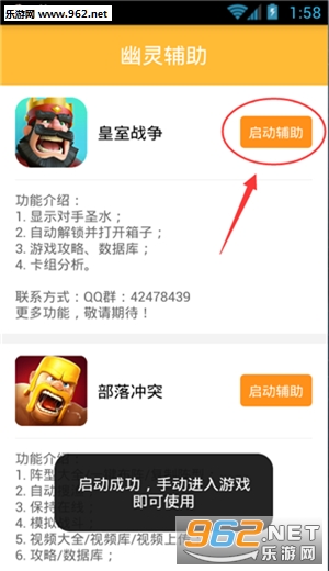 《幽灵辅助》最新型的游戏辅助,转为皇室战争与COC打造的专用辅助工具,对于这两款热门游戏打造的最强工具,对于当下热门的皇室战争来说,自动开宝箱,掉落预测,显示攻击范围还有对手的圣水情况,这些功能一目了然,还富含各种强大秘籍攻略。