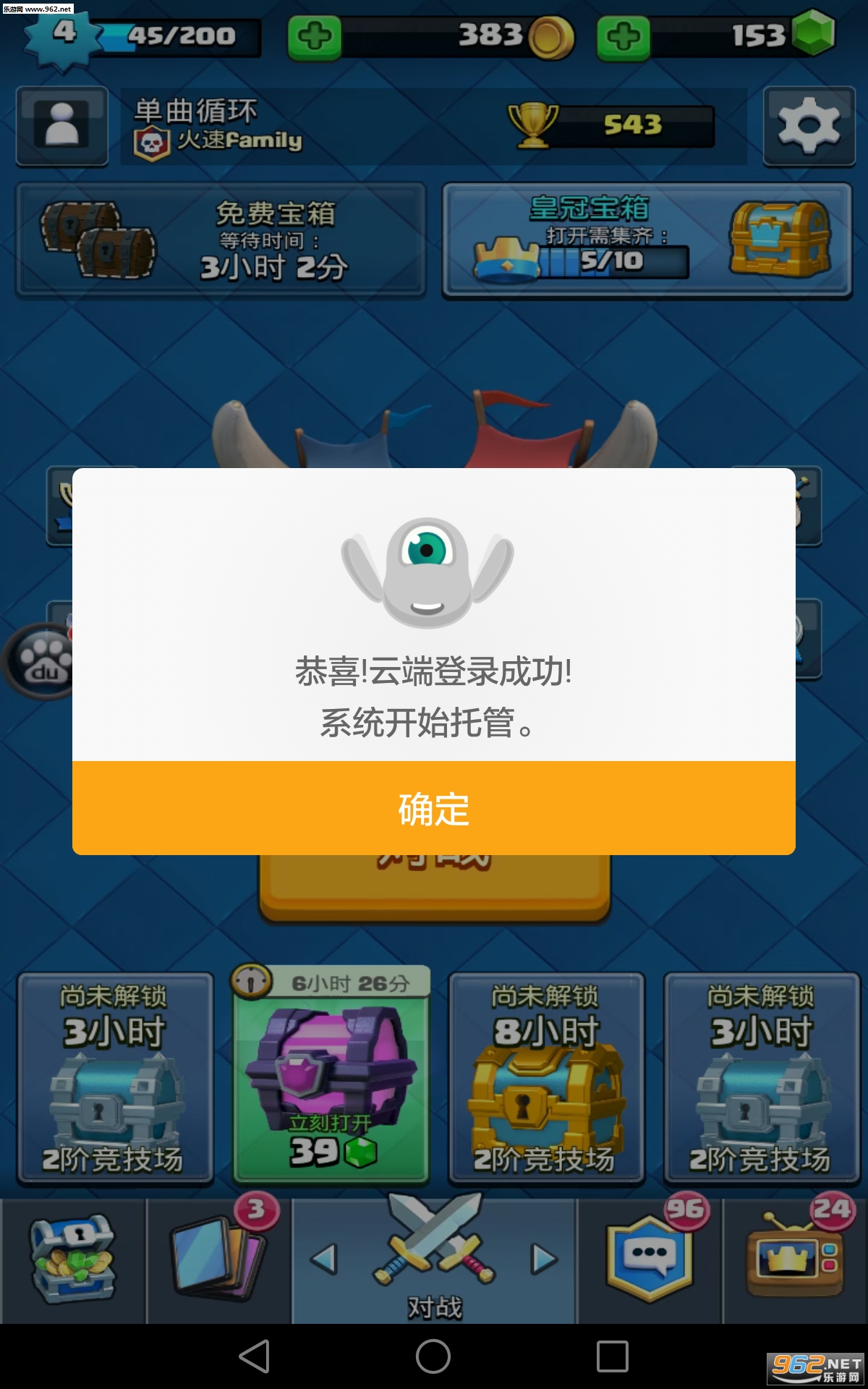 你只需要像迁移「部落冲突」的村庄那样,把「皇室战争」挂到云端,机器人小艾就会帮你自动开宝箱了。