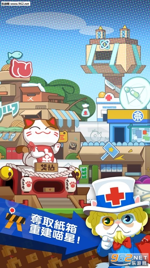 3.指挥喵星人执行任务,一砖一瓦重建纸箱镇。