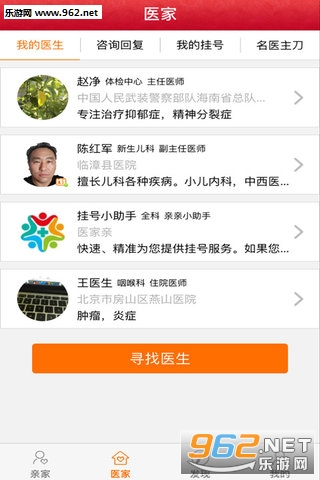 医院常常人满为患,挂个号可能排一天才排得到自己,一天的时间就浪费了。《医家亲》帮您实现在线预约挂号,节省用户的时间,还有在线咨询功能,让用户面诊之前对自己的病情有个大概的了解。快来下载试试吧~