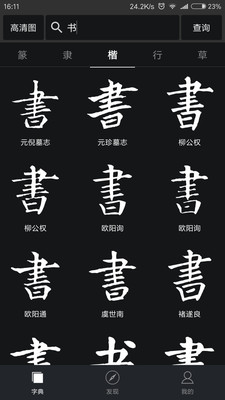 矢量格式书法字,放大至三倍屏幕大小仍然有极高的质量而不失真,为目前市面上显示质量最高的书法字典;