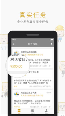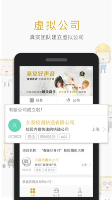 堂口是一款在校园内打造真实商业世界的APP,用户可以注册虚拟公司,承接真实任务获得商业回报和能力成长。