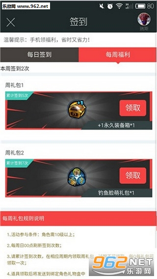 王牌对决游戏币随时随地充值与此同时,手机APP助手还推出了每周福利活动,连续登录5天、7天,就可以获得+1永久装备箱、钓鱼脸萌礼包等精彩福利。