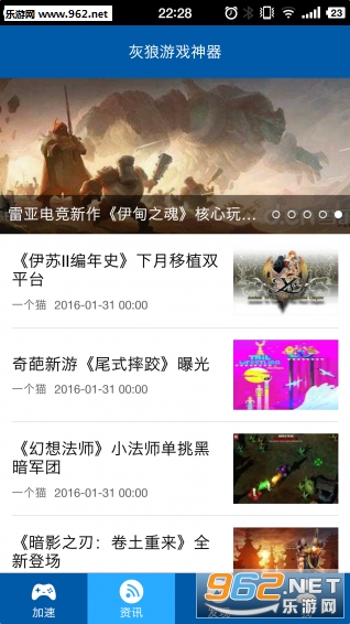 《灰狼游戏神器app》是专为游戏加速打造的应用,能随时查看各种游戏资讯,了解手游的技巧,更有加速功能,能让您获得更好的游戏体验,是您玩游戏的必备应用。