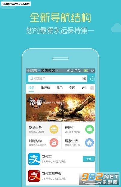 新增应用市场频道模块,为用户提供海量应用,专题、排行榜任意搜