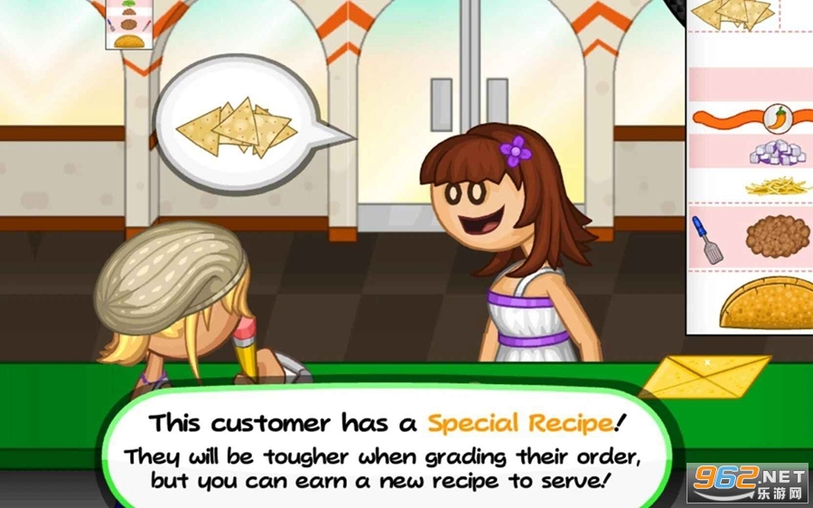 在塔可店每个站是一个动手的过程,你必须将所有不同的站之间多任务跟上订单。加入肉锅火炉,并继续检查每个锅翻转和切肉在正确的时间。倒入肉成各种塔科弹,并与美味的配料和酱汁的桩填补了玉米饼。玩完餐的脆片篮和新鲜沙拉一碗,和所提供的食物到你饿了客户!