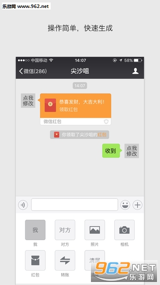 4、制作红包 - 在高仿的聊天的界面内,让红包满天飞,并可方便截图;