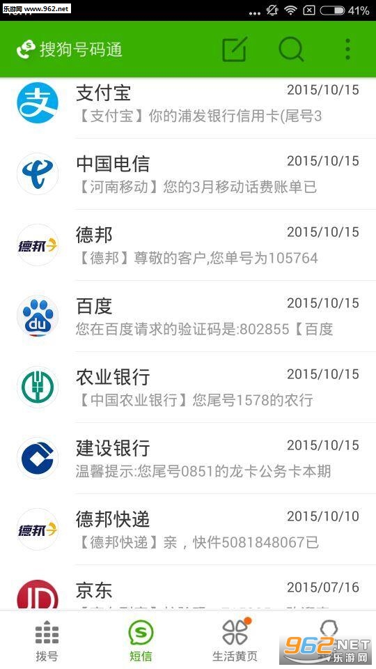 再也不用担心受到推销诈骗电话的骚扰了,《搜狗号码通》帮你识别骚扰电话,将他们一键关入黑名单,让你从此免受骚扰电话的困扰,只接想接的电话。还有生活服务功能,一键查询周边生活服务或全国企业机构的电话,拦截垃圾短信,还你一个绿色手机。