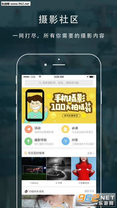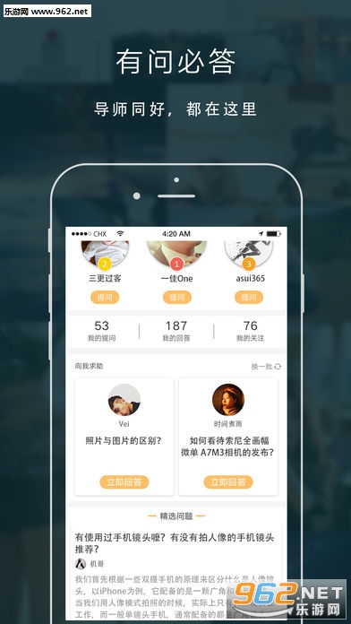 行业大咖开设摄影系列课程,最具干货的线上摄影教育平台,还有问答平台,每个细节都为你解答得一清二楚。