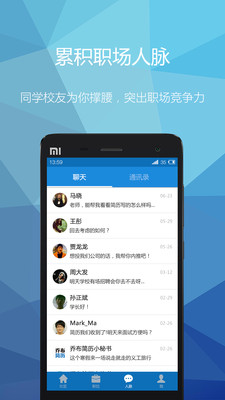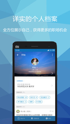 【人脉】即时接收来自企业的邀请,老师的职位推荐,或向学姐学长们求助,建立自己的职场人脉圈。