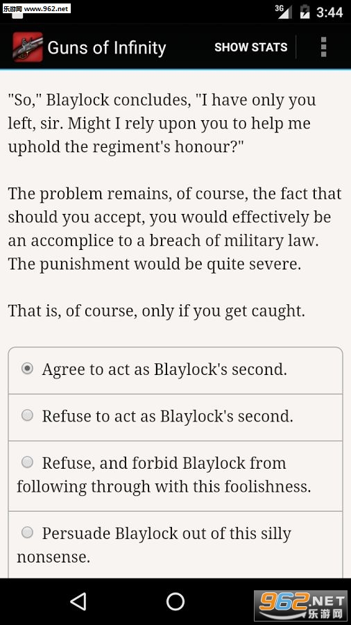 《无限之枪Guns of Infinity》是一款文字性质的冒险类手游,采用了纯文字叙述手法,人物的对话形式展开,类似于热门游戏《生命线》的玩法,加入部分图片内容进行结合,也可以称之为AVG形式,你的每一个选择都将影响到结局的发生,而能否接收到最终的胜利就看你对事件的把握了。