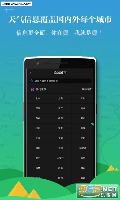 支持全国范围城镇查询天气,是您出差、旅游的不可或缺的好帮手