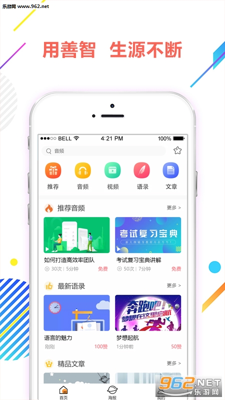 《善智商学院app》是一款非常不错的手机教育学习软件,拥有海量的朋友圈模板,音频资源,至理名言语录,让你在线使用,还能帮助学校有效的进行招生,获得生源信息,非常方便实用,需要的朋友赶紧下载吧!