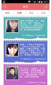 你发布的征友信息每天会触达附近多位异性,对你感兴趣的异性会通过你预留的联系方式建立关系。