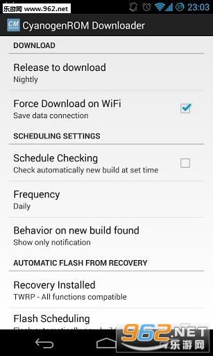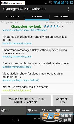 CM下载器Cyanogen ROM Downloader帮助你保持最新系统,可查看过去版本、最近版本以及未来版本将实现的更新内容,付费用户可自动刷入最新CM rom