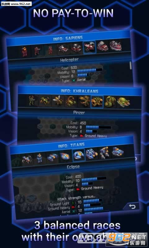 《星际争霸》这款游戏的风格科幻味道十足,让我们想起了经典的星际争霸,游戏中包括了几大种族,玩法类似于机器人大战的战棋格式。游戏是战略回合制,支持多人联机对战(支持2对2、3对3以及4对4的团队竞技),拥有3个种族,每个种族都有8个各具特色的兵种,有50种以上的地图可选,支持游戏聊天,世界范围内排名。喜欢的朋友快来下载体验吧。