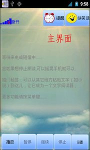 《读短信来电报姓名》,是一款在用户不方便看短信和接电话时,提供方便快捷功能的软件,语音自动读取短信内容,重要信息一个不漏,来电话报出来电者的姓名,不重要的电话立刻忽略,软件还提供娱乐功能,解决开车时的苦闷。