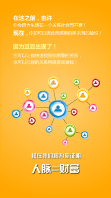 《豆豆》,是以相亲和婚恋为主题的手机在线交友软件,在这里,软件将以相亲的目的向用户推送好友,用户也可以在全国范围内进行悬赏,让别人给你介绍,对象不仅仅限于相亲,找关系、找家教,这里应有尽友,解决不了的社会关系,就上豆豆。