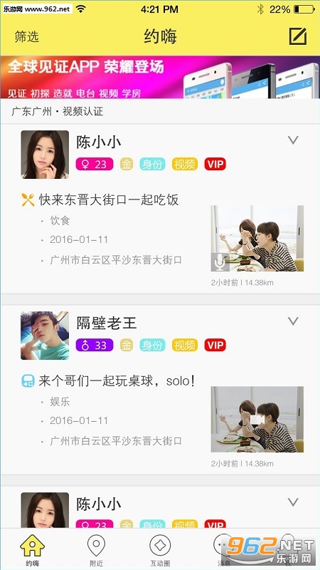 约嗨app手机版软件:是一个为青少年以后提供网络聊天交友聚会的app。你可以通过它结识到志同道合的朋友,也可以和好友们一起去参加聚会,同时你也可以在这里发泄自己的情绪,分享自己的生活哦!