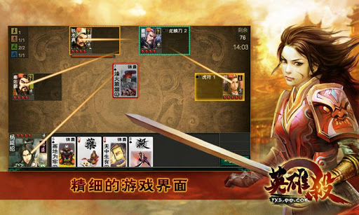 《英雄杀》是腾讯公司自主研发的一款桌游卡牌类游戏。它主要是基于QQ游戏平台,能提供给平台玩家交流与竞技的游戏乐趣。游戏融合了“杀人游戏”和策略卡戏的特点,游戏过程紧张有趣,且需要冷静的判断和智慧才能完成游戏。游戏类型采取流行的历史穿越题材,集结了中华历史中的诸多耳熟能详的历史人物,能让玩家了解历史人物的同时能享受高度的代入感。现在终于移植手机客户端,玩家限制大大减小,游戏会更加方便了。