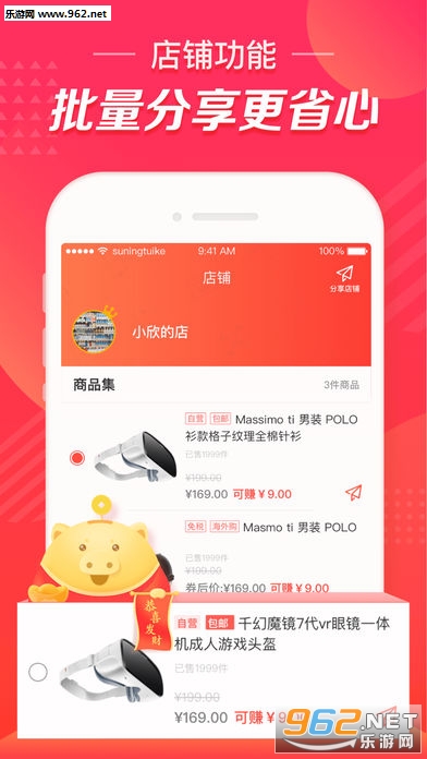 通过新版苏宁推客APP购买商品,返佣1%~50%。不仅自己购买商品可以省钱,将商品通过、QQ、等社交平台进行分享推广,还可以赚取佣金。