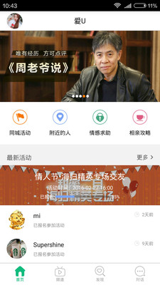 爱U是一个专门服务新一代中国单身男女的机构,成立的想法源自对情感的思考和提出根本的解决办法。除了教会你们在恋爱中的技巧和经验,还能给你提供更多线下的见面会,以多彩的活动气氛,让你们在欢笑中相识相知。让你做一个有态度的人,寻一份称心的姻缘。