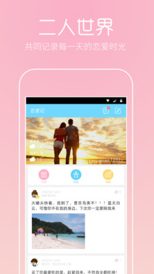 帮助大家记录二人世界的点点滴滴,保存你们恋爱的所有喜与悲,还有纪念日特别提醒。