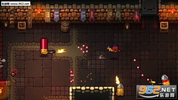 《挺进地牢》是一款由Dodge Roll制作的动作游戏,在每一层,玩家都会面临各式各样的敌人。而越往深走玩家要面临的困难就越多,游戏中玩家的生命值是有限的,为了能顺利过关,玩家需要充分利用场景中的各种要素,如引爆炸药桶,退到桌子当做掩护等等。