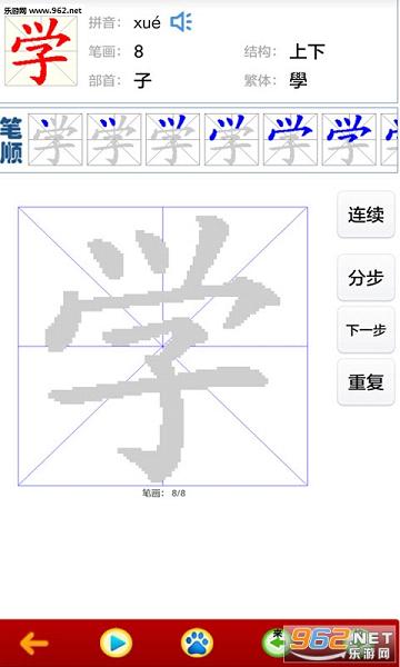 ② 汉字描红,教你学写汉字。手把手教你写汉字,可动态演示如何写汉字。