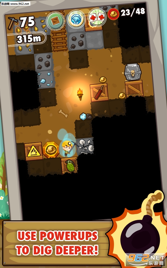 现在是挖矿时间,该开始挖掘了!点击方块来挖的更深来寻找宝藏,稀有神器并触发爆炸来引起连锁反应!