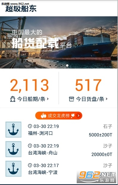 超级船东app是‘超级船东网’发行的手机端客户软件,软件同步PC端为用户提供最快最方便的第一手资料,随时查看自己的货物情况,船只行程等等,操作方便,使用简单,安全可靠的平台每天达成交集近千次,你的船只货运好帮手!