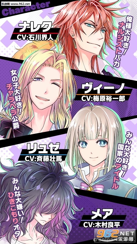 《废柴王子(DAME×PRINCE)》是一款攻略废柴王子的恋爱游戏。登场的公爵角色,有最强的自恋狂,国家的偶像,家里蹲等等性格的王子。作为弱小国家的公主也就是玩家,怎么样攻略自己国家附近的废柴王子?有分LOVE END,Normal END,DAME END三种结局。