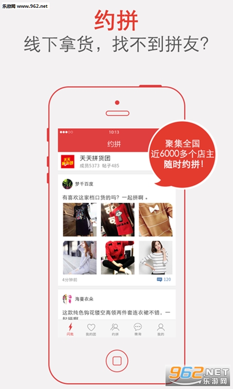 天天拼货团是一款专业网购衣服的手机应用软件,在这里聚集了全国各地近6000实体店主,随时发起约拼。还加入了全新的实体店购买系统,让你在手机上也能购买到实体店中的各类产品,再也不用担心去实体点麻烦或者网购产品质量差了。