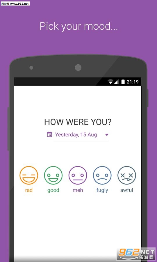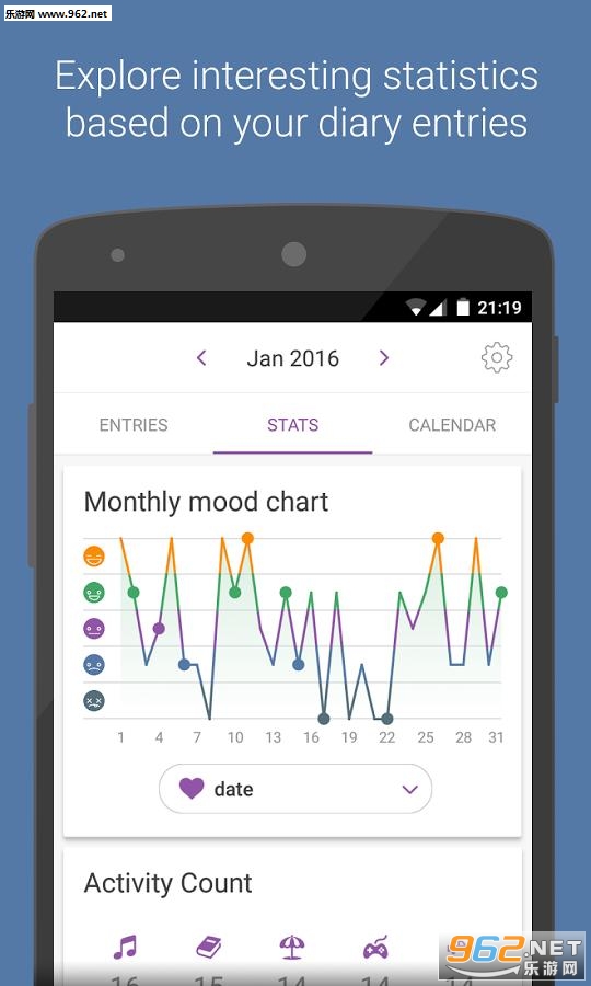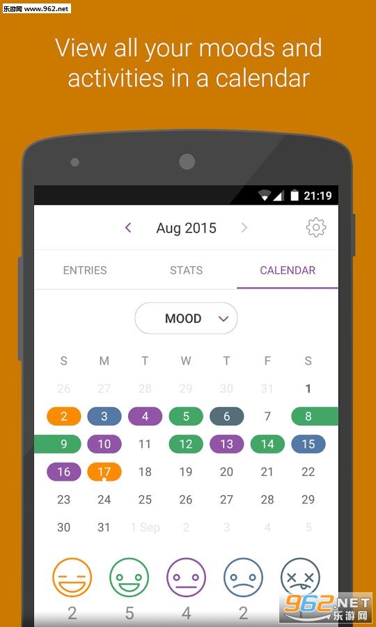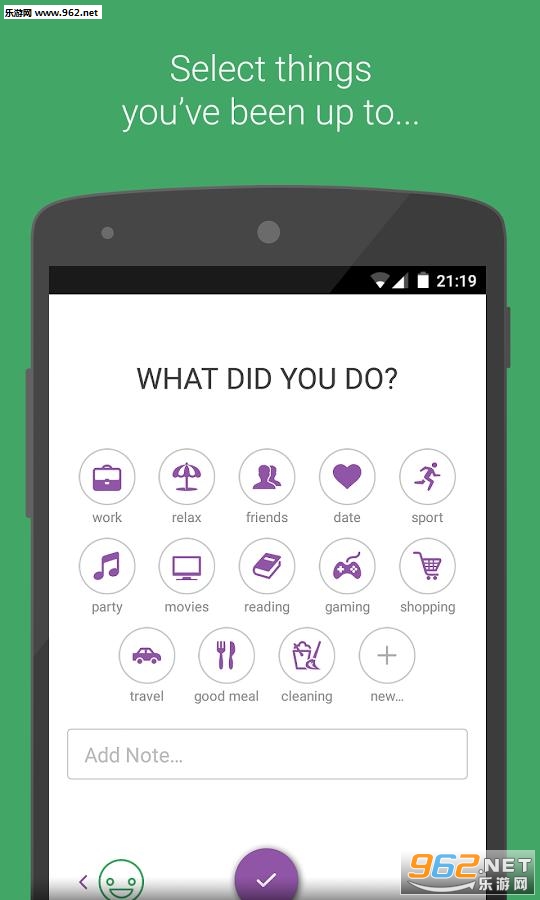 挑选你的情绪,并添加你白天一直在做的活动。您还可以添加注释,并保持了老日记。记录心情和活动都在统计和日历。这将帮助你了解你的习惯好。保持你的活动轨迹,并创建模式,以更高效!