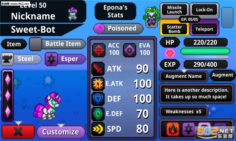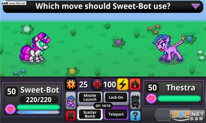 游戏中,玩家通过搭配招式与AI小马对战。在不断的战斗中,提升自己的战斗力。该游戏为一款独立游戏,目前还处在测试阶段,喜欢“彩虹小马”的玩家可以来试试。