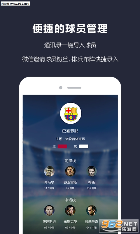通讯录一键导入球员,邀请球员粉丝,排兵布阵快捷录入