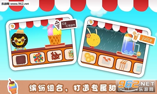 3、甜品店游戏,10+种口味的果汁,冰淇淋里任孩子挑选!