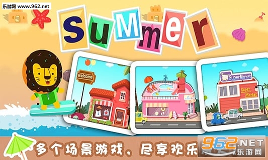 快乐的夏天到了,快和多纳一起去甜甜小镇上玩吧。在小镇上有游泳池,甜品店,超市,和美丽的沙滩。6个场景游戏帮助孩子们全方位感受夏天,同时学习夏日相关词汇,了解日常交流用语。
