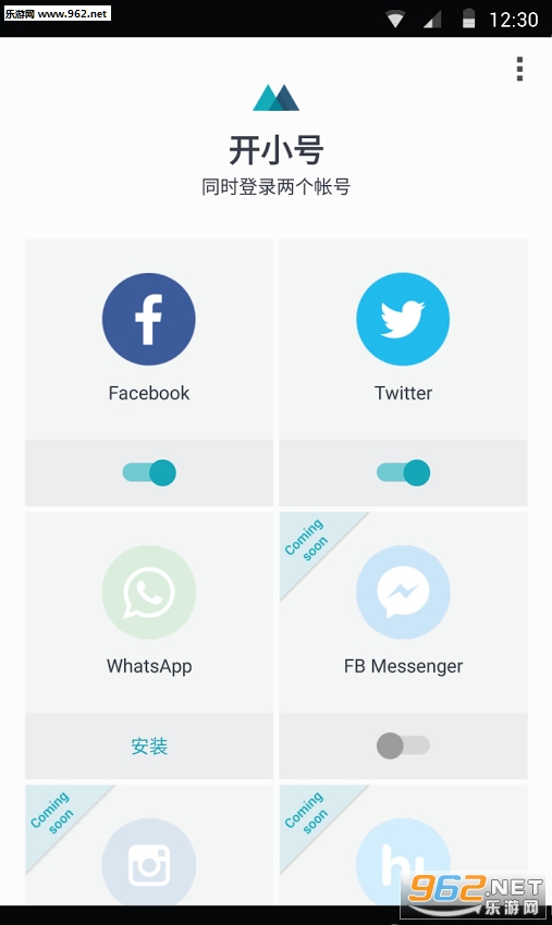 开小号app是来自猎豹的多开类移动应用,开小号app支持多帐号同时在线,可以让你在、QQ、等社交平台和游戏应用上同时登录两个帐号,彻底释放你的小号需求。