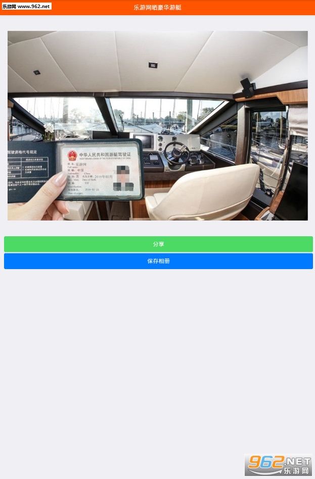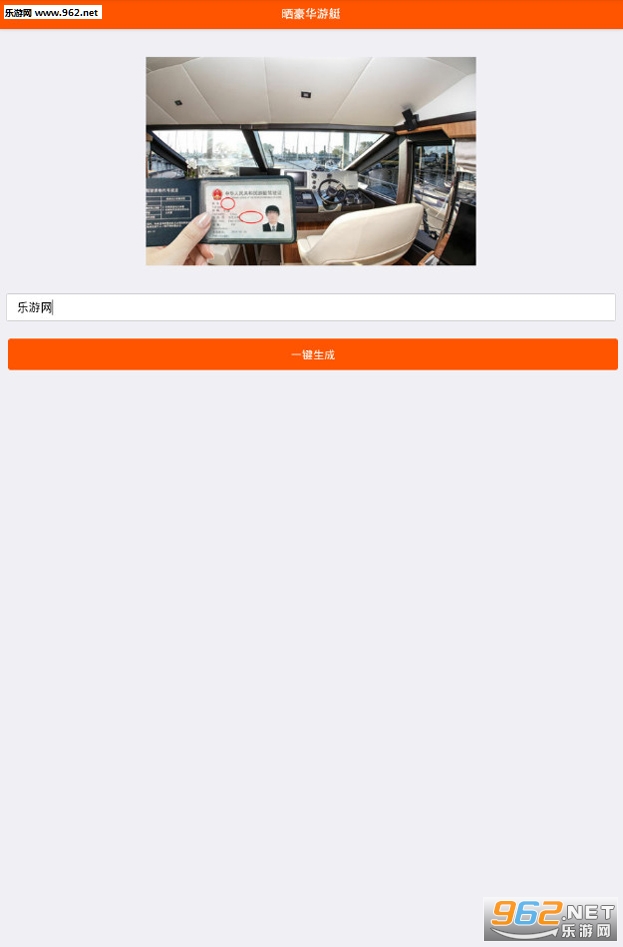 《朋友圈晒豪华游艇图片生成器》是一款装B软件,小伙伴们想不想有一艘自己的豪华游艇呢,使用软件可以一键生成带有自己名字的驾驶证和游艇的图片,装B必备。