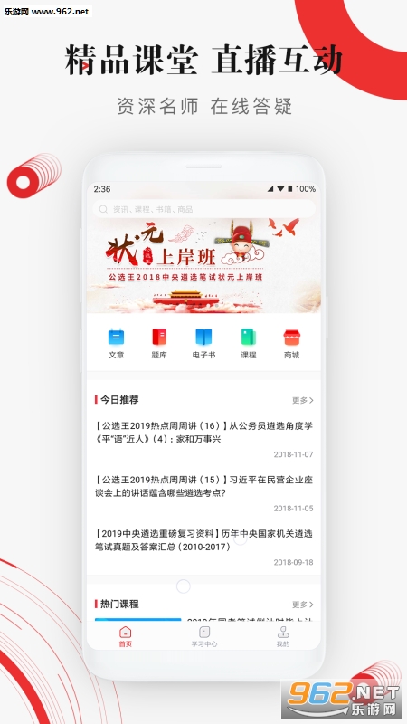 3.首页新增好课推荐版块;