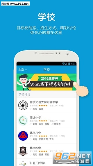 5.中学院校库:中考帮旗下中学院校库覆盖全国10万所重点/普通中学,包含择校信息、学校介绍、师资力量、校园环境、学校地图等。