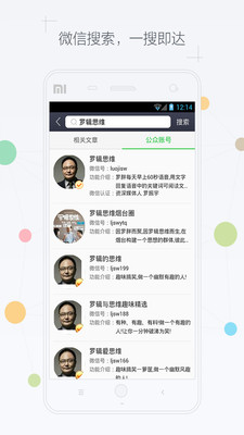 3.搜索:接入搜索,可快速搜出热聊话题、公众号及文章,精彩内容独家全收录,一搜即达!