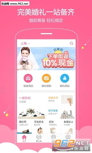 订婚宴、拍婚照、选婚纱、挑礼服、找婚庆,蜜月游,完美婚礼一站备齐!到喜啦,让结婚轻松一点。200万对新人口碑推荐,一站式婚礼筹备首选。
