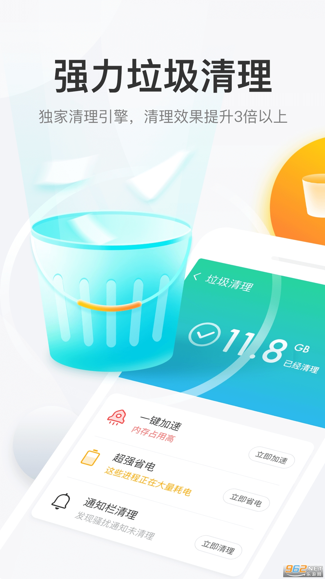 一键加速,智能扫描,一键清理;