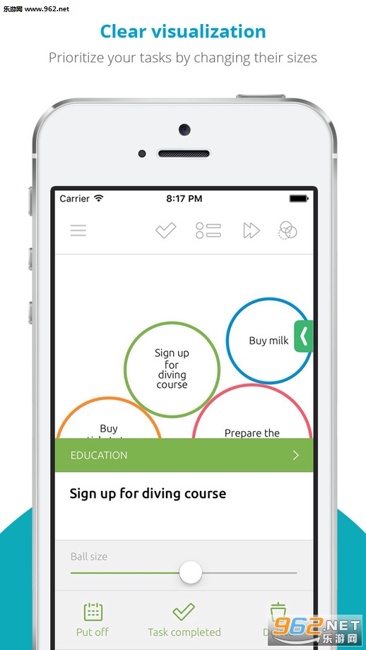 球的大小代表了待办事项的重要程度