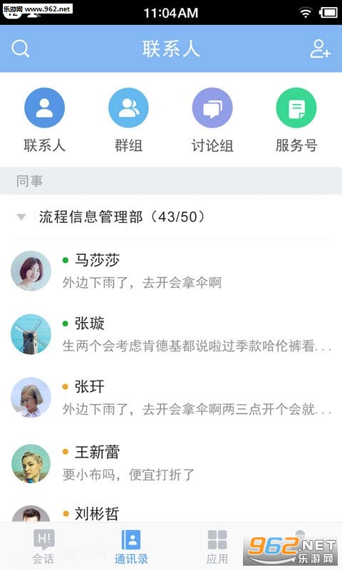 终于不再是QQ独霸天下了,相对于娱乐休闲性更加明显的QQ来说,现在市场上涌现的新一波通讯软件,反而超简便办公的方向发展,像阿里巴巴旗下的钉钉就是如此。百度Hi可以使用百度账号登录,更加方便。
