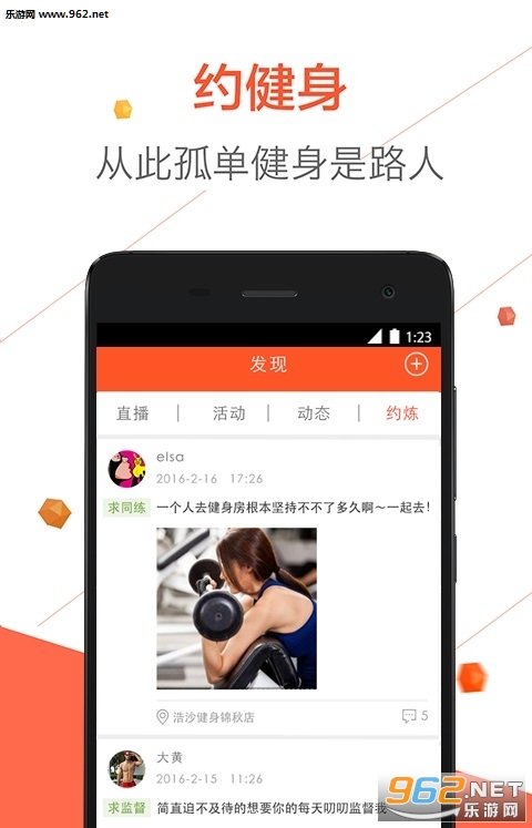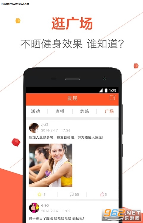 5、在这里你可以记录自己的训练动态、性感瞬间,找到志同道合的健身好友,形成属于自己的健身圈子。