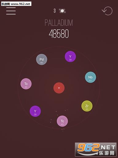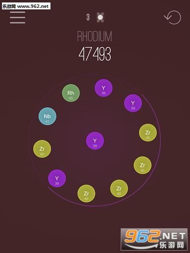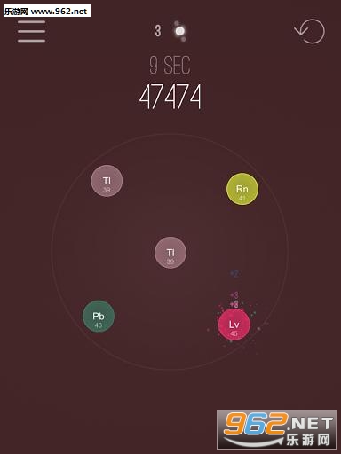 当原子布满整个轨道时,游戏结束。规则很简单,想要得到高分却并不是一件易事。对撞后的新元素是什么、可能得到的结果、前方几步存在的风险,都是需要考虑的因素。由于下一位原子的不可预见性,设计太长的连击很有可能因为贪心而提前结束游戏。
