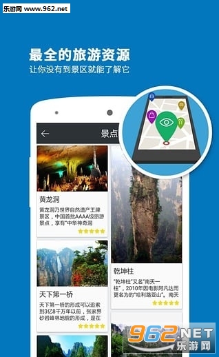张家界导游APP像一个经验丰富的导游,当您进入景区时,及时地向您推荐您当前的游览线路及沿途景点;当您漫步在景区时,张家界导游能根据当前您所处的景点位置,为您提供生动的语音解说及详尽的图文介绍;当您处在景区外时,张家界导游是一本妙趣横生的百科全书,图文并茂地向您展示着景区深邃的文化内涵和丰富的历史积淀,让您体验到景区身临其境的愉悦感。